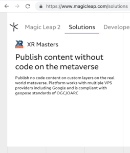 XR Masters Spatial Content Management Platform lets users and developers publish no code content on custom layers on the Real World Metaverse. Platform works with multiple VPS providers including Google and is compliant with geopose standards of OGC/OARC.
